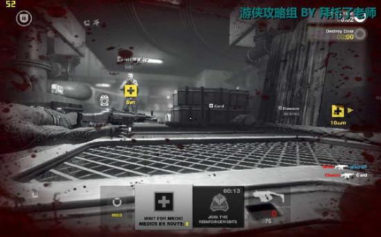 冲击最前线总是没什么好下场,死的最快的就是你。不过类似与敌人,你的队友战地医生还是可以使用“针筒”营救你。另外在游戏中,如果长时间没有收到伤害,你还可以自动回血。