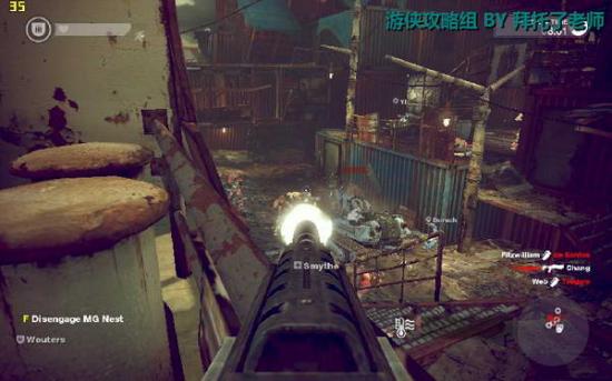 发现前面有个机枪。消灭前面的敌人之后,跑过去。