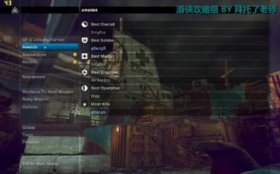 这里可以看到一组人之间的比较中,谁是那个职业当中最好的,谁又是杀敌最多的。不过一般来说单人模式中玩家都是杀人最多的,AI 杀的人都没有这么多的。