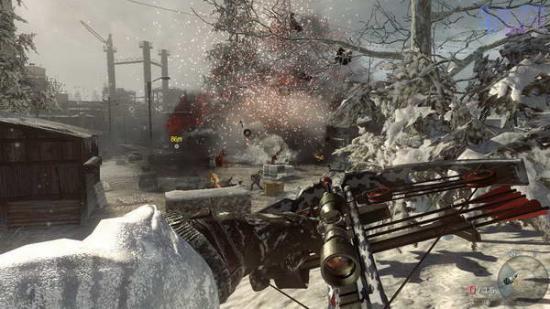 干掉外边剩下的敌人和卡车上的机枪后跑打开车上操作机枪干掉对面的敌人,最后会发生雪崩,我们坐车逃走。