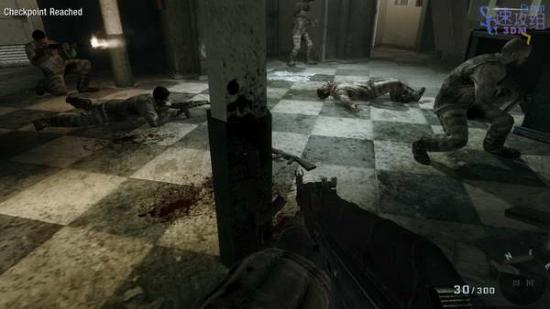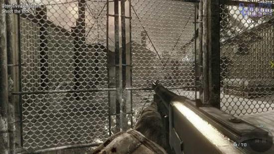 跟着Reznov来到修理间,等他拿上焊接器后敌人会破门而入,这种敌人护甲很厚,虽然不像MW2里的那么厚。