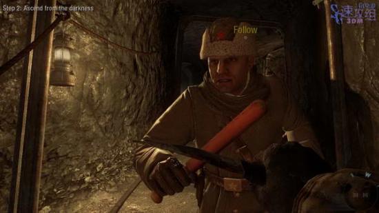 等着reznov冲的时候我们跟着他,躲到一辆矿车后边,他和胖胖推矿车,我们紧跟在后边作掩护,干掉两边的冲过来的敌人即可。