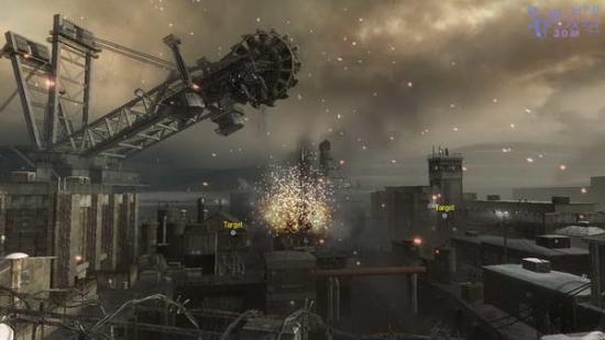 前进一段后需要小心敌人直升机,有时候刚看见它就被扫死了,另外这一座敌人载具爆炸的威力更大了,范围更广了,所以要躲开爆炸的载具的话要比前几作躲得远点才行。