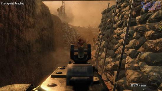 等Hudson能自己走了以后我们跟上Woods,从战壕里一直向前冲,干掉左边的偶尔冲过来的几个敌人,途中会有敌人从我们头顶上跳下来把我们放倒,连按F还击干掉他,然后接下来的战壕比较深,头顶上有敌人架梯子通过,前边的通道里也有一群敌人,这里最后用机枪一起扫死。