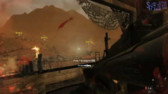 跟着woods来到机枪阵地后用机枪杀一会敌人,然后会有三辆敌人坦克出现,捡起火箭筒轰掉三辆坦克,然后继续跟着woods走。
