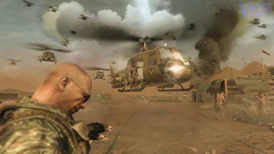 继续前进,前边的坦克会爆炸,从坦克下钻过去之后在战壕里防守一会,等直升机来了之后继续前进。