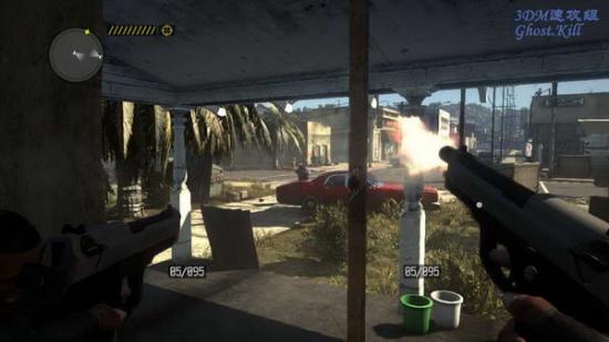 大街上有很多平民,可以杀,杀多了会任务失败,所以还是不要管了。来到这个停车场, 杀光所有敌人后回到自己的车上,一路开车逃过敌人追捕后过关。