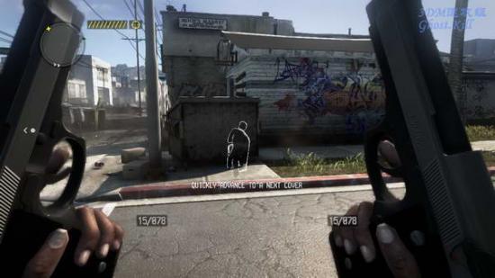 前面后面的都会有敌人,全部杀光之后从房子的正门出去,对面马路上有敌人的路障和大量敌人, 利用垃圾箱当掩体绕到他们侧面全部杀光,然后去下一个目标点。