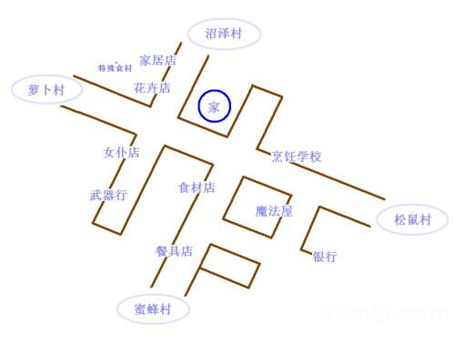 下面是我画的一张饼干村的简易地图,如果有人也在玩的话,可能会有帮助。