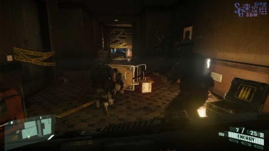 都装好后大楼会停电,一片漆黑的什么都看不到,最后用热成像模式,一共会有两个外星兵来碍事,干掉后回到室外。