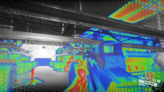 关掉电力后房间里会一片漆黑,用热成像模式干掉房间里所有敌人后坐电梯回到上层。