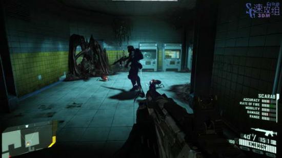 CG结束后主角从地上爬起来,发现自己穿上了纳米服,走到前面在地上捡起没子弹的手枪。