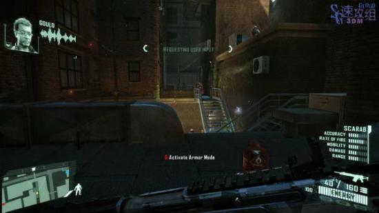 来到图中的这里后按Q开始装甲模式,然后干掉周围所有敌人继续前进。