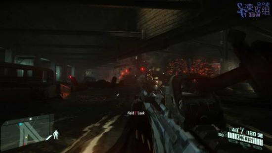 这里似乎是一个地铁的隧道,前进一段后会看到一辆列车在隧道里撞毁,旁边有几个敌人和一群外星兵,都干掉后继续前进。