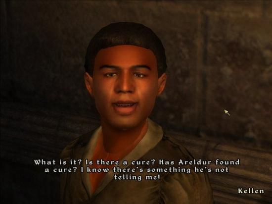 和牧师说完之后,就进教堂的地下室找奄奄一息的Kellen聊聊,看看他的样子吧- -珍爱生命...远离毒品....不然就和他一样了....