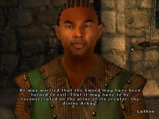 他担心剑已经变的邪恶了.不得不在其创造者-神圣的Arkay的祭坛上恢复原貌.