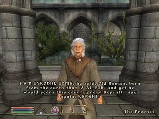 上古神灵reman ,东方的al-esh的子嗣说“我是cyrodill.奋斗吧”,尽管他现在不满于这个国家.忏悔!我再说一次.要忏悔! (这句话翻译的可能有问题)