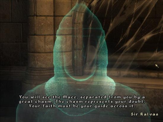 你将会看见锤子和你被一条裂口分开了.这个裂口会令人迷惘.你必须凭借你信念的指引穿越它.(什么乱七八糟的信念,其实就是要你穿件十字军盔甲的部件.)