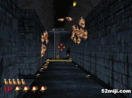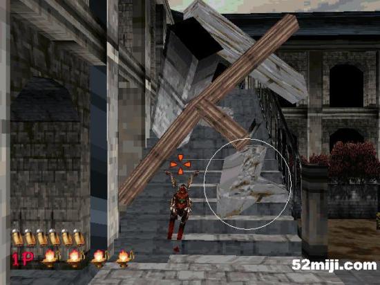 14 射击障碍物(白色圆圈内的部分,射击后其余的会倒下来),走这(图5.1)