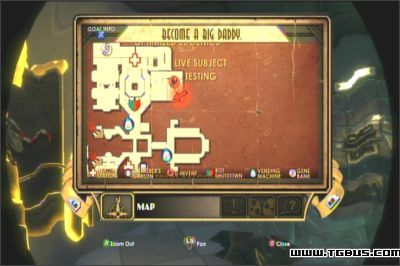 出来后跟着扔火的敌人,到一处空场他会进入一间无法打开门的屋子,这时新任务提示要找到Big Daddy的物品,到如图处可找到各个物品,