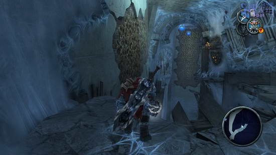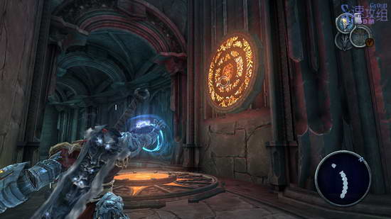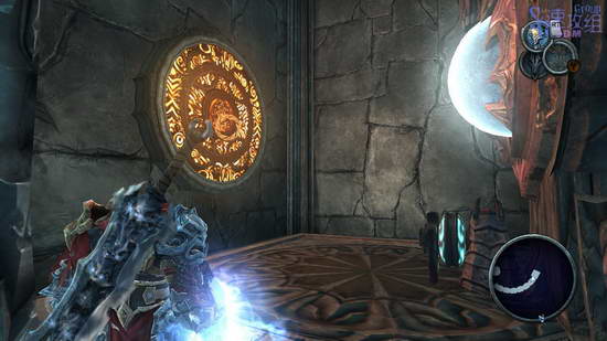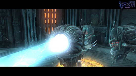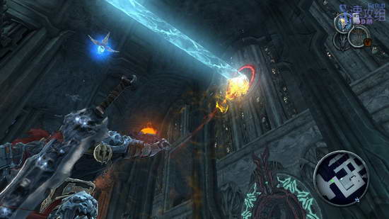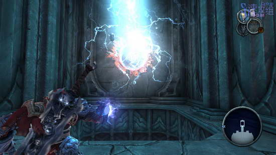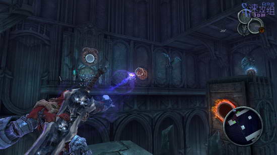 这里先利用光球飞上去,然后空中按RT用锁链荡秋千,最后落到网子上爬上去,后边的房间里干掉敌人后才能走,这条路之前走过一次了,不过上次去了其他地方,这次直接去解开封印的大门。