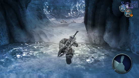 接下来一个空旷地,想到对面去就要让这里充满水,跳到最下边,到最左边的尽头处有水晶,打烂后这里会进水,不过水还不够多,还是左边,到比较靠前的位置可以游上去。