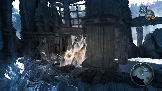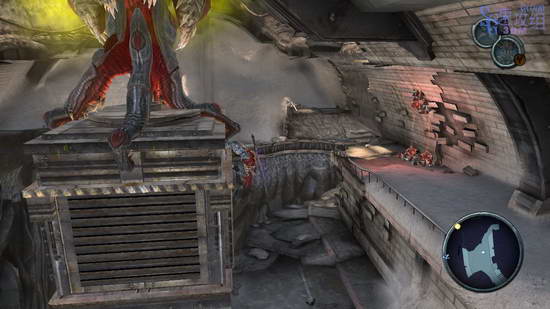 地图有有显示目标位置,怎么走就不细说了,图中这个地方要用到减慢时间的能力,先打烂门口的水晶进来后用飞刃触发时间控制器,然后立刻操控机器卡门,立刻跑到门那里过去,减慢时间的时间不常长,要抓紧。