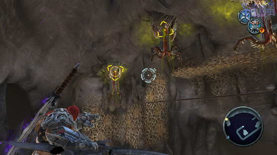 站在远处,飞刃触发减速后立刻跑到有火石的那个山洞,进去后触发里边的减速,然后捡起火石,扔到外边的天花板上,爆炸后会有个石台掉下来,从那里离开这后又是个水塘,游到尽头处顺着网子爬上去。干掉几个大怪,一群杂兵,穿过几个山洞来到一片沙子的开阔地。