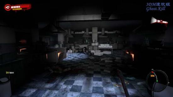 跳到下面的电梯里,从电梯门出去后来到一个像是厨房的地方,但却没吃的,不过稍微感到了点恐怖气氛, 毕竟这种昏暗的环境下和一群僵尸独处。
