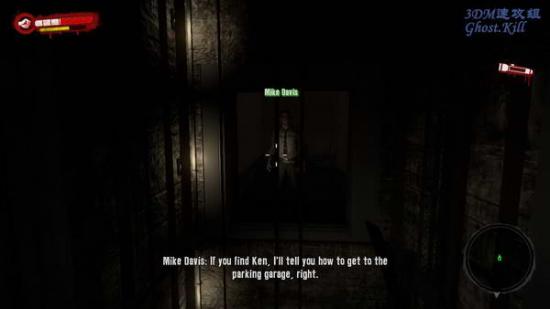 四台电脑都使用后回到mike那里交谈,然后从房间出去下楼,来到停车场,这里僵尸不少, 我玩的时候都杀光了,怕麻烦的话也可以直接跑到目标车辆那里上车。