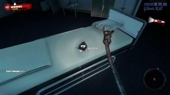 去隔壁的房间找吗啡,找到后原路返回和ken对话,他已经神志不清了,听他胡言乱语完了后离开, 该去找mike了。