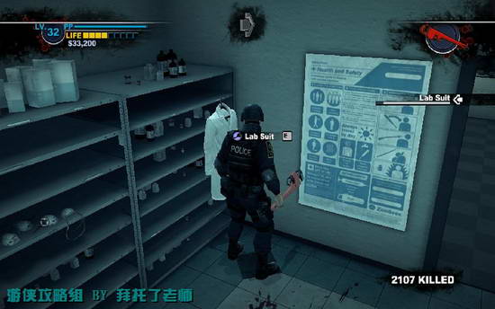 在后面的房间内遇到两个持枪的研究人员,他们的血不是很多,很容易对付。