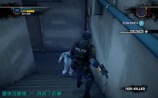 在楼顶遇到了准备坐飞机的Sullivan,他站在高台上,会射击和扔燃烧瓶。躲在障碍后用狙击枪射击,然后跑到后面的楼梯躲避燃烧瓶。前面地上会有吃的补充血量,不过跑过去的时候要小心,周围有很多丧尸。
