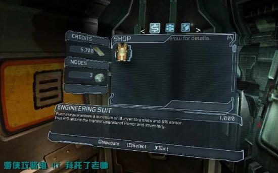 关闭缺口后,主角就能继续行动了,打开左边的门进去,在保存点干掉那里的怪物后保存。这里还有Store可以购买一件护甲,之前收集的金钱就是用来购买护甲、武器、弹药、药品的。