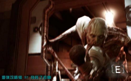 可以开始控制主角后,向左边跑,穿过大门再右拐,沿着通道一直往前冲。在经过To Secure Area的大门后,从边上会扑上来一只怪物,猛按E键摆脱攻击并将大门关闭。