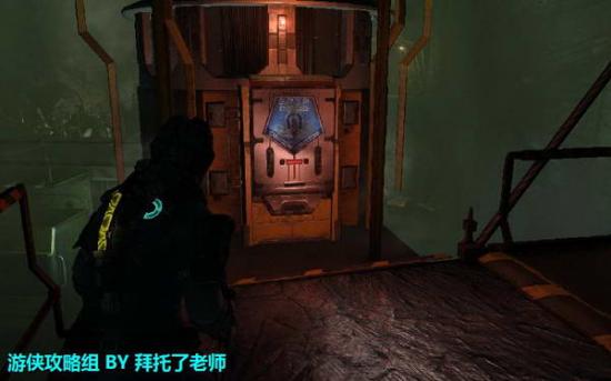 挖掘机到达目标点。Isaac与Ellie从挖掘机上下来。主角需要进入边上的房间去启动飞船。从通道左边的红色的门可以过去。