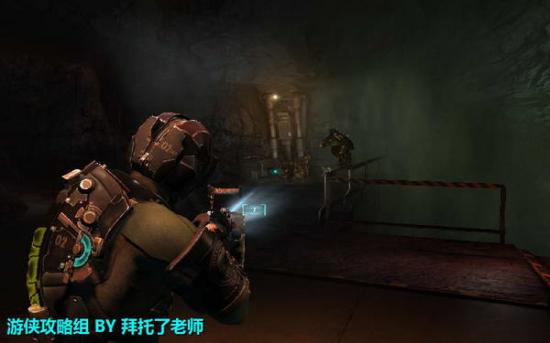 从边上的斜坡去上层,然后做货梯到对面,干掉从下面爬上来的怪物。