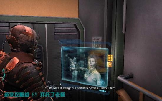接着从右边的门进去,穿过房间后坐电梯。在电梯中出现了Ellie和Stross的影像。