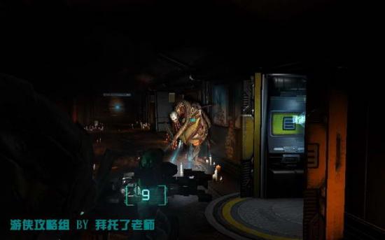 从电梯出来后收集弹药、补给,保存游戏,然后在大厅中与Ellie和Stross会合。此时会出现BOSS怪,集中火力射击怪物头与手臂之间的黄色部位来干掉它。攻击时注意躲避BOSS的飞扑。