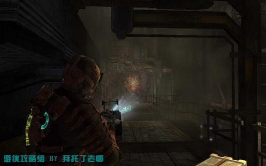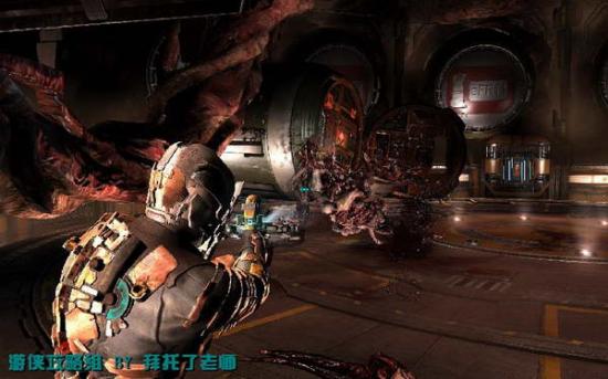 然后去做电梯,出来会遇到自爆怪,尽量不要打爆它的黄色肉囊而产生爆炸。如果爆炸把左边的破门炸掉的话,立刻射击门上的红色三角来关闭应急门。