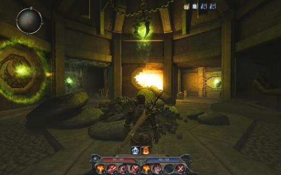右边是技能大厅:考验你的灵活和技巧,在跳板上不停的跳跃吧,依次打开看到的拉杆会激活新的平台给你跳上去。建议多存盘。跳到最顶上的时候,有三个拉杆。