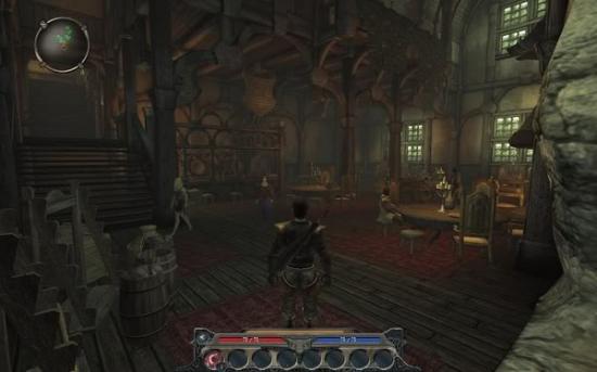 然后左手边就是一个高耸的酒馆,进去问问看。