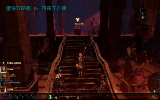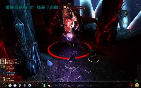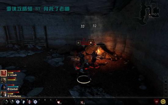 往洞穴的南面前进,在东南面的房间里面会遇到防御很高的魔像。在洞穴南端遇到石像怪,对话之后会发生战斗。再往东走就会碰到大型的石像怪BOSS。这个BOSS会飘到空中蓄力施放大招,此时BOSS不受攻击,所以把队员拖到柱子后面躲避大招的攻击,同时干掉召唤出来的小怪。BOSS放完大招会会有很长的硬直时间,冲上去猛砍。