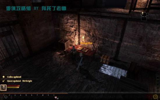 进入Lowtown后前往Gamlen的家,以后那里就是主角的家了。在家里有仓库、信箱(Writing Desk)等,还可以调整队伍。经过一番对话后,A New Home?完成,获得新任务Birthright。