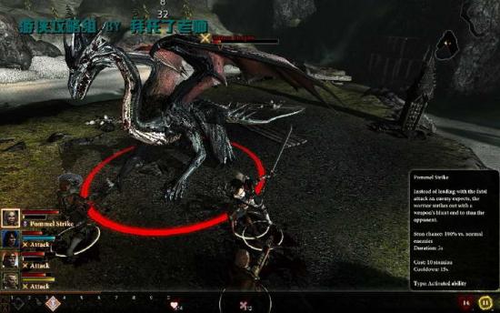 在The Bone Bit的野外地图的洞穴中会遇到巨龙,巨龙会吐龙息,会用翅膀扇飞众人,还会击晕。所以在对付巨龙时要格外小心。