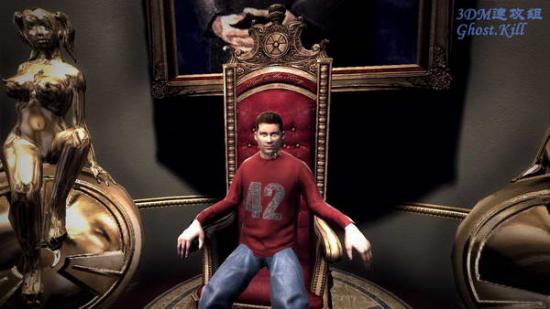 出来之后从没有被挡住的楼梯上楼,楼上房间中央的座位上有个小孩,他想要拍个照, 按下右侧的快门照相后他会开心的离开。坐到椅子上之后过关。