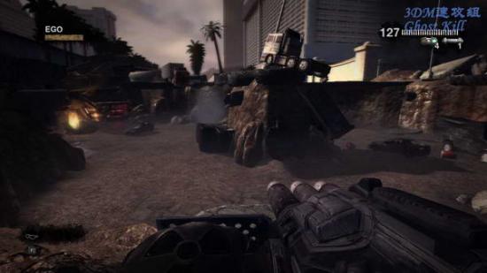 杀光外星人后又会来个体型超大的BOSS,围着大坑中央的掩体和他周旋,以便使用RPG射击, 子弹补给点刚进来的时候应该看到了。
