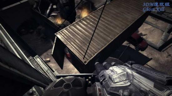 先到红色卡车里拿上RPG,然后爬梯子到高层一个房间里拿到电池,之后敌人飞船飞过来, 用RPG炸掉敌人飞船后去弹药补给箱那里,贴着钢材跳出护栏。