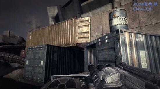 第二部分开始之后穿过一个集装箱来到图中这里,把这个土黄色集装箱里的油桶打爆后后面会有两个铁桶滚出来, 然后把两个铁桶拿到红色集装箱打不开的铁门那边,需要放三个,这个蓝色集装箱上的铁桶也放过去。