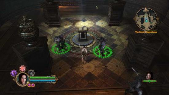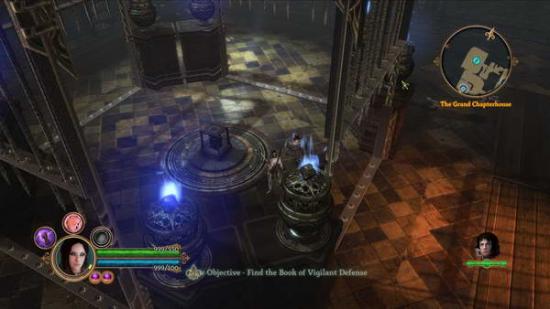 台座周围的敌人会不断重生,想练级就在这里练级吧,其实尽快碰触到书本会让他们立即死亡 。找齐四本书后大教堂重新启用,异世界通道打开,odo传送了过来,交给你两个任务:寻找盟友